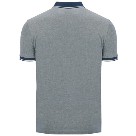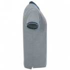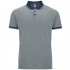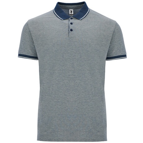 Short-sleeve heather polo shirt. Solid-colour 1x1 rib neckline with contrasting decorative detail. Inner placket with contrasting decorative ribbon and three buttons. Ribbed cuffs with contrasting detail. Bottom with reinforced side openings and decorative tape. Back length slightly longer than the front.