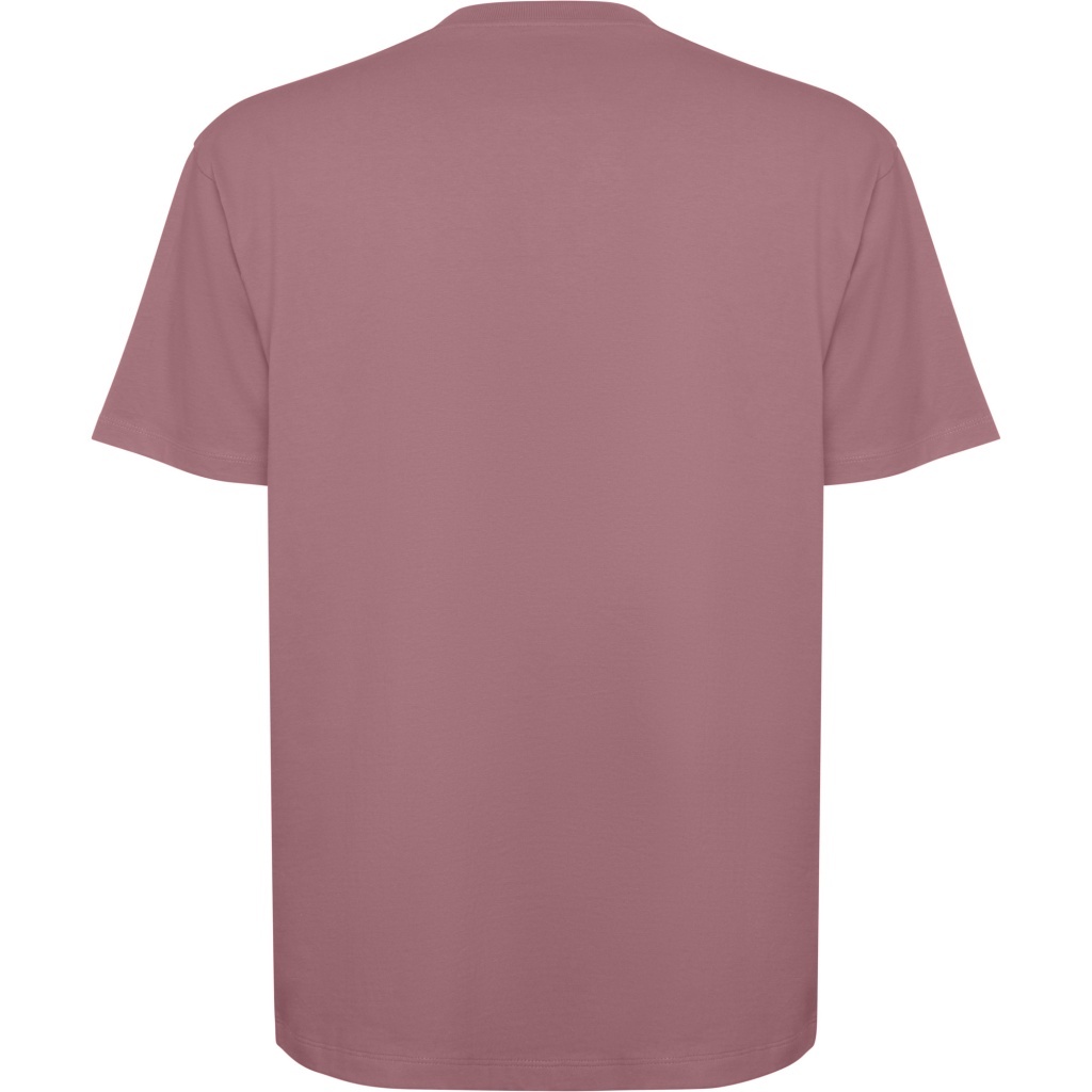 Short-sleeved oversize T-shirt. Round collar finished with 2x1 ribbing and covered seams in the same colour fabric. Side seams. Wide double stitching on sleeves and hem.