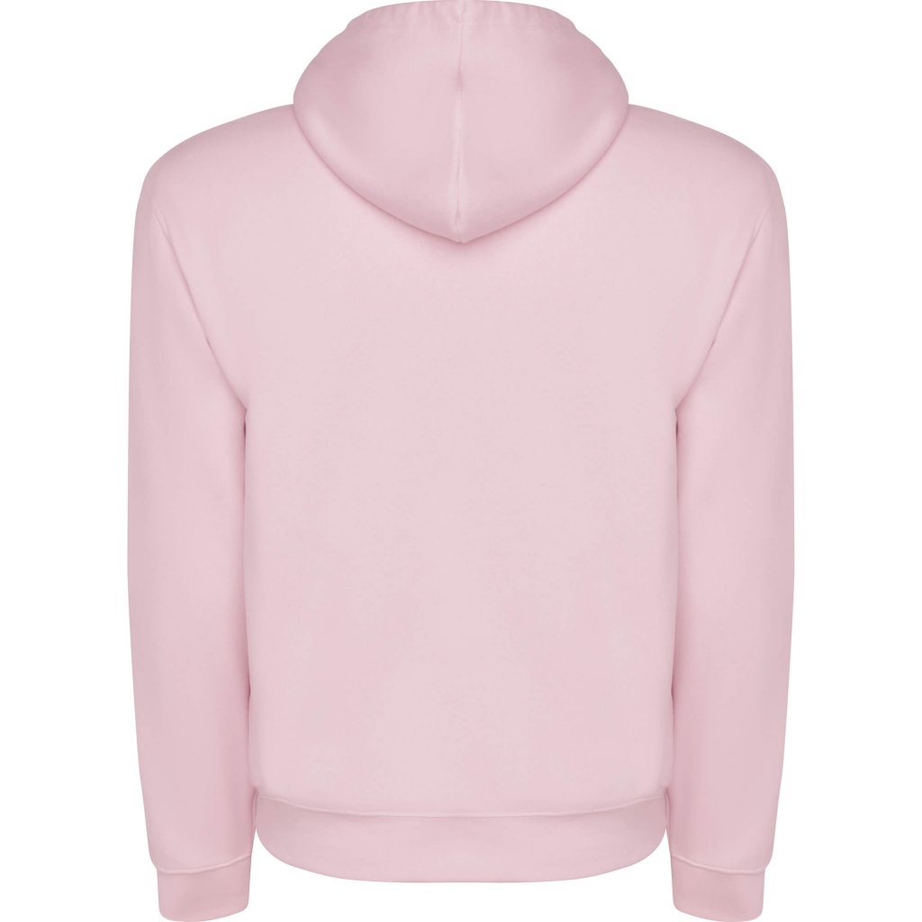 Hooded sweatshirt with kangaroo style pocket and adjustable drawcord. Elastane 1x1 rib in cuffs and waistband. Children size without drawcord.