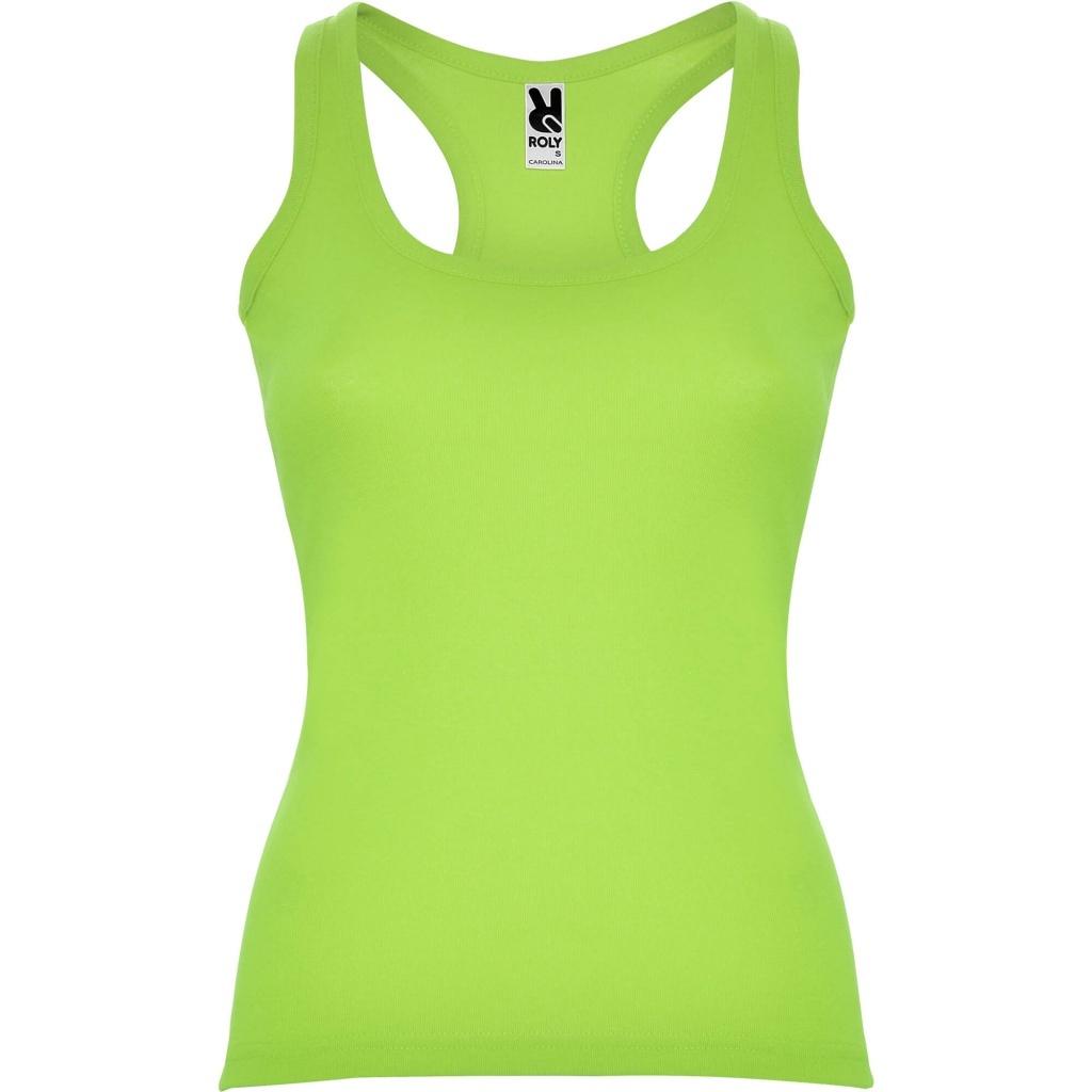 Fitted vest with ribbed neckline and armholes, swimming-style straps and side seams. The Carolina tank top offers maximum freedom for sport with a swimming-style back, available in 7 colours and made from 100% cotton.