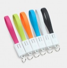 A keychain and USB charging cable in one. Attach your keys to the keychain and charge devices using a standard USB connector on one end and a microUSB/Lightning connector on the other end. This product is the ideal travel companion.