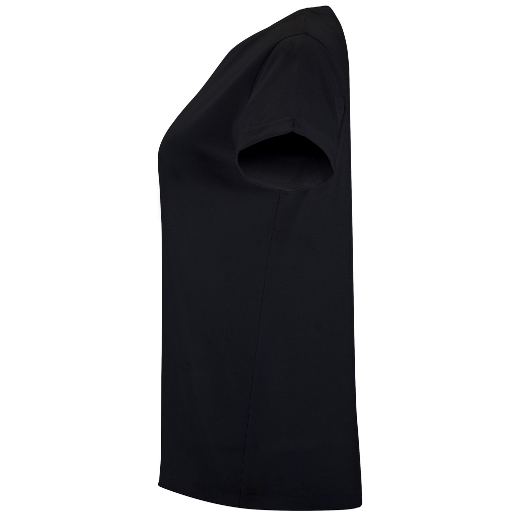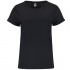 Women's short-sleeve T-shirt featuring a round neckline made from the same fabric. Neck seams are reinforced and covered in matching color. Sleeves are roll-up style with reinforcement at four points.