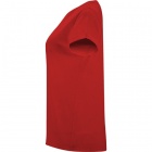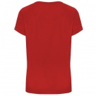 Women's short-sleeve T-shirt featuring a round neckline made from the same fabric. Neck seams are reinforced and covered in matching color. Sleeves are roll-up style with reinforcement at four points.