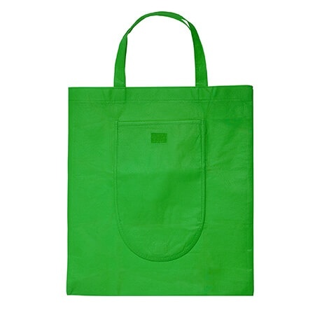 Foldable shopping bag crafted from non-woven material, featuring a button closure, a practical outer pocket and 37cm short handles.