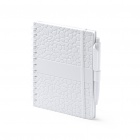 A5 notebook made from stone extracts featuring hard covers and double springs. Includes a matching ball pen and pen holder with blue ink and 70 lined sheets—designed for reliable everyday use and a neat writing experience.