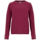 Women’s sweatshirt constructed from two different fabrics and two colours. The neckline, half cuff and back are in 2x1 rib fabric. Cuffs feature an asymmetric cut. Side openings at the hem and a back that is longer than the front.