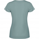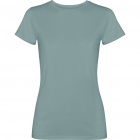 Women's short-sleeved T-shirt in 100% combed cotton Single Jersey acid wash, featuring a round 1x1 neckline and side seams, with seams in the same colour as the fabric.