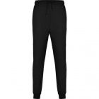 Long sport trouser with wide adjustable waistband with drawcord, fitted cuffs on legs, reinforced seams, zipped side pockets  and corner back pocket with stitched view.