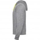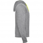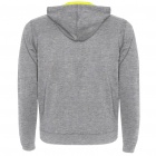 Sweat jacket with details in fluor colour. Central zip with puller to contrast. Hood with lining in microperforated polyester fabric in contrasting fluor colour and drawstring and contrasting metal eyelets in fluor colour. Long sleeves with cuff and waist rib 1x1. Two front pockets with wide trim. Reinforced covered seams in neck.