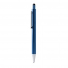 Metallic-finish aluminum ballpoint pen with stylus and jumbo blue-ink refill.