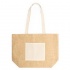 Laminated jute bag featuring a front pocket and long natural cotton handles.