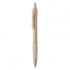 Push-button pen crafted from wheat fiber and ABS with a comfortable grip; refill contains blue ink.