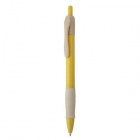 Push-button pen crafted from wheat fiber and ABS with a comfortable grip; refill contains blue ink.