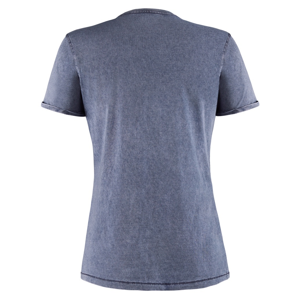 Short-sleeve women's t-shirt with a jeans-effect finish. Featuring a 1x1 rib crew neck and reinforced shoulder-to-shoulder seam coverings. Armholes have a double seam and sleeves are finished with a hem. The HUSKY WOMAN t-shirt's slim round neck adds a feminine touch.