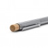 Eco-friendly pen featuring a recycled stainless steel body and a bamboo button.
