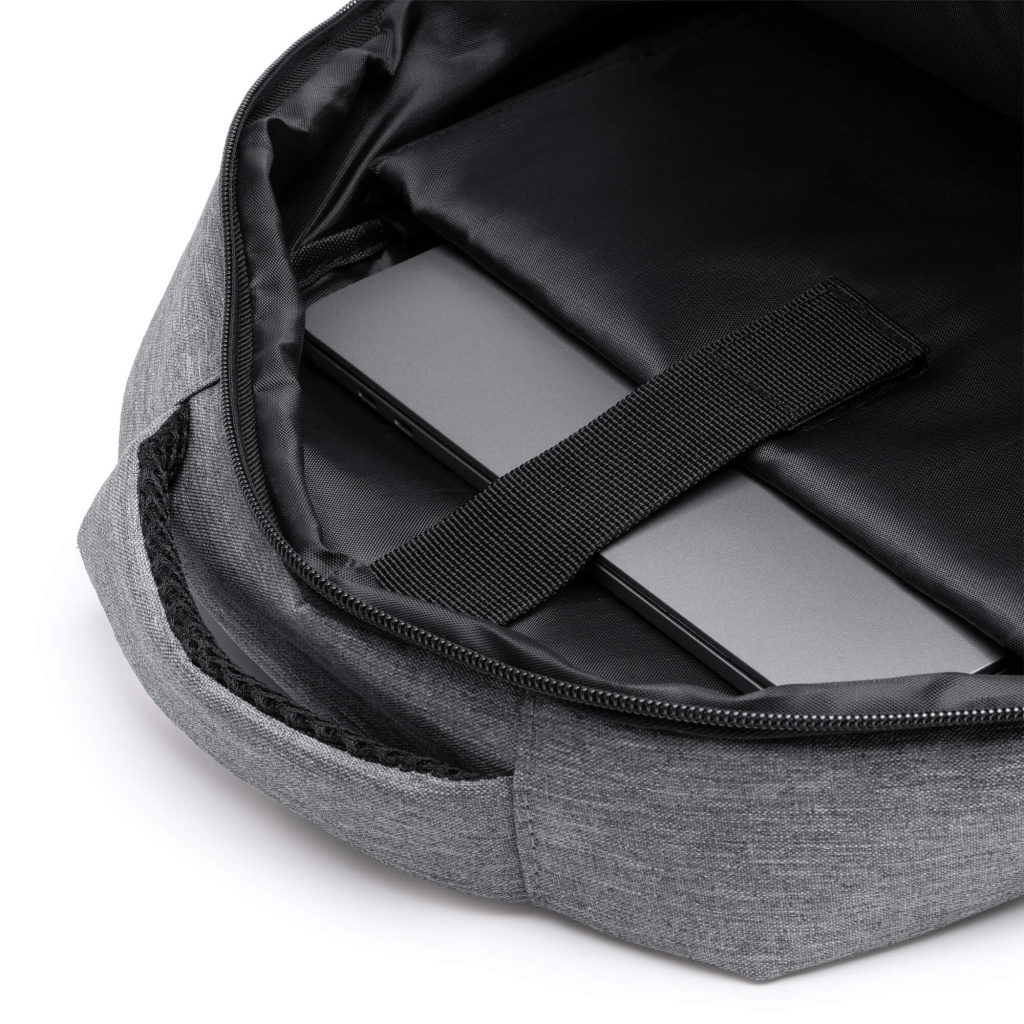 It also includes a practical trolley strap for attaching the backpack to your carry-on during travel. Combine functionality, style and sustainability with this RPET 600D recycled polyester backpack with vigore design and PU Leather accents — carry your belongings securely while showing environmental awareness.