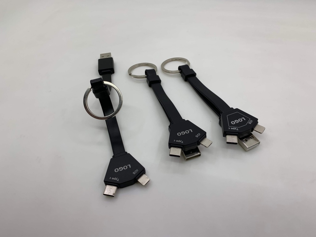 LED ME CHARGE is a 3-in-1 charging cable with an illuminated logo and a keyring. The cable offers Micro USB, Lightning and USB Type C connectors.