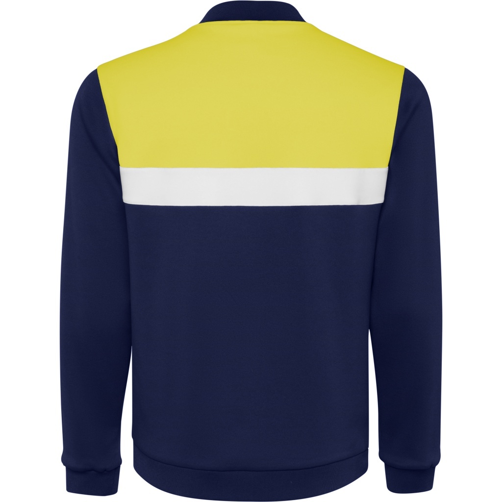 Sport-style sweatshirt featuring a front zipper and zippered side pockets for secure storage. Finished with 1x1 ribbing at the collar, cuffs and hem. Includes an asymmetrical element on the left chest, specifically designed for embroidery.