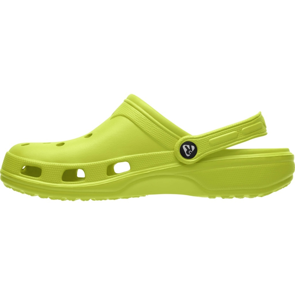 Comfortable clogs featuring ventilation holes and a two-position pivoting heel strap.