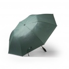 Foldable umbrella made from RPET with automatic opening. 210T pongee fabric. Fiberglass ribs featuring a windproof protection system and an EVA handle. Velcro fastener. Includes matching cover.