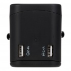 Universal travel adapter with 3 standard ports: USB (2.4A) and 1 USB Type-C port (3.0A). Double fuse.