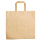 Natural-coloured paper bag, 80 g/m² kraft paper, with short reinforced flat handles — a sturdy, practical choice for hotels and restaurants offering takeaway service.