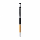 Metal ball pen with matt finish, bamboo grip and touch pointer.