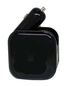 ON-THE-GO is a car travel charger with a dual USB port. The built-in digital chip and fuse prevent overvoltage, overcharging and protect against short circuits. Input AC 100-240V, input DC 12-24V, output 5V / 2.1A.