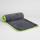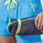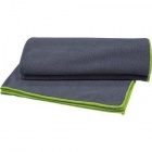 Bath and sports towel with overlocked edges using polyester filament in three matching yarns; in colour dark lead (46) the ribs are in fluorescent yellow (221). Elastic trim for easy folding.