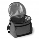 Spacious thermal bag crafted from 600D RPET fabric. Features main and side zippered pockets, an isothermal interior and an adjustable carrying strap. Capacity: 8 l.