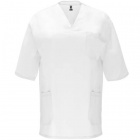 Unisex service top with short sleeves and crossed peak neckline. Pocket on chest and two side pockets. Lateral openings