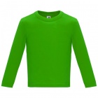 Long sleeve t-shirt, special for baby. Fine gauge fabric, compacted finishing. Crew neck and placket in shoulder with snap buttons from size 6M to 18M. Size 2 years with no placket in shoulder. Side seams. Designed to keep little ones warm while letting them wear their favourite colours.