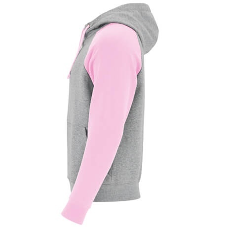 Two-tone unisex hoodie featuring a crossed-neck hood with metal eyelets and contrasting inner lining and cords. Raglan sleeves provide a contrasting look. Includes a kangaroo pocket and 1x1 rib-knit cuffs and hem with elastane for a comfortable, secure fit.