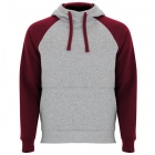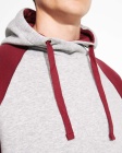 Two-tone unisex hoodie featuring a crossed-neck hood with metal eyelets and contrasting inner lining and cords. Raglan sleeves provide a contrasting look. Includes a kangaroo pocket and 1x1 rib-knit cuffs and hem with elastane for a comfortable, secure fit.