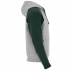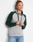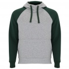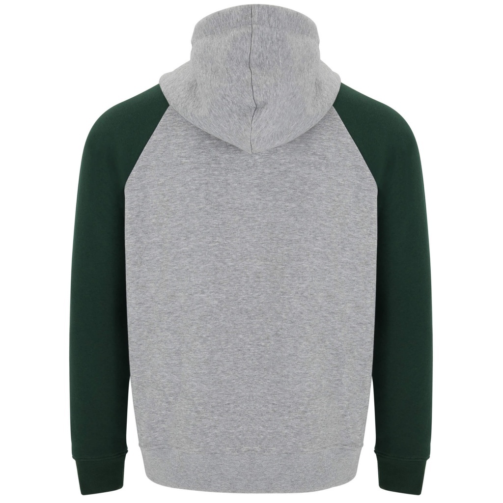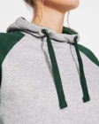Two-tone unisex hoodie featuring a crossed-neck hood with metal eyelets and contrasting inner lining and cords. Raglan sleeves provide a contrasting look. Includes a kangaroo pocket and 1x1 rib-knit cuffs and hem with elastane for a comfortable, secure fit.