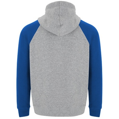 Two-tone unisex hoodie featuring a crossed-neck hood with metal eyelets and contrasting inner lining and cords. Raglan sleeves provide a contrasting look. Includes a kangaroo pocket and 1x1 rib-knit cuffs and hem with elastane for a comfortable, secure fit.