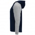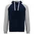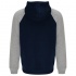 Two-tone unisex hoodie featuring a crossed-neck hood with metal eyelets and contrasting inner lining and cords. Raglan sleeves provide a contrasting look. Includes a kangaroo pocket and 1x1 rib-knit cuffs and hem with elastane for a comfortable, secure fit.