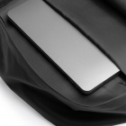PU leather backpack designed for everyday use, featuring padded handles for comfortable carrying and an additional carry handle for quick grab-and-go. It includes a double front pocket with waterproof zippers and a spacious main compartment with a padded interior pocket sized for a 16” laptop, offering a 14-liter capacity that blends functionality and style for daily accessories.
