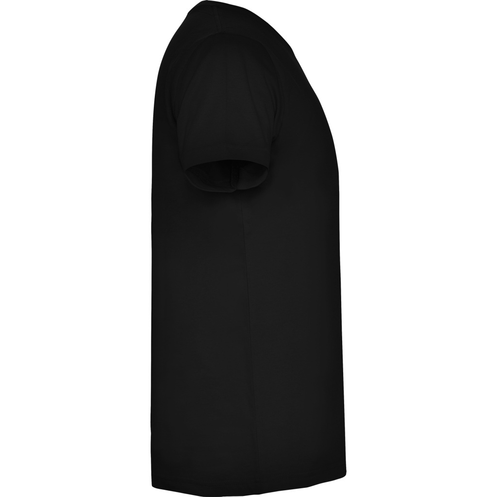 Short sleeve V-neck t-shirt, 4 layer neck. Reinforced covered seams in collar and shoulders, side seams.