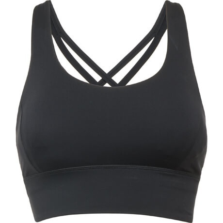 Technical women's top in breathable fabric. Features decorative crossed straps at back and a high-rise fit.