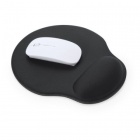 Soft polyester mousepad with a padded wrist rest and an anti-slip silicone base for comfortable, stable use.