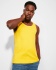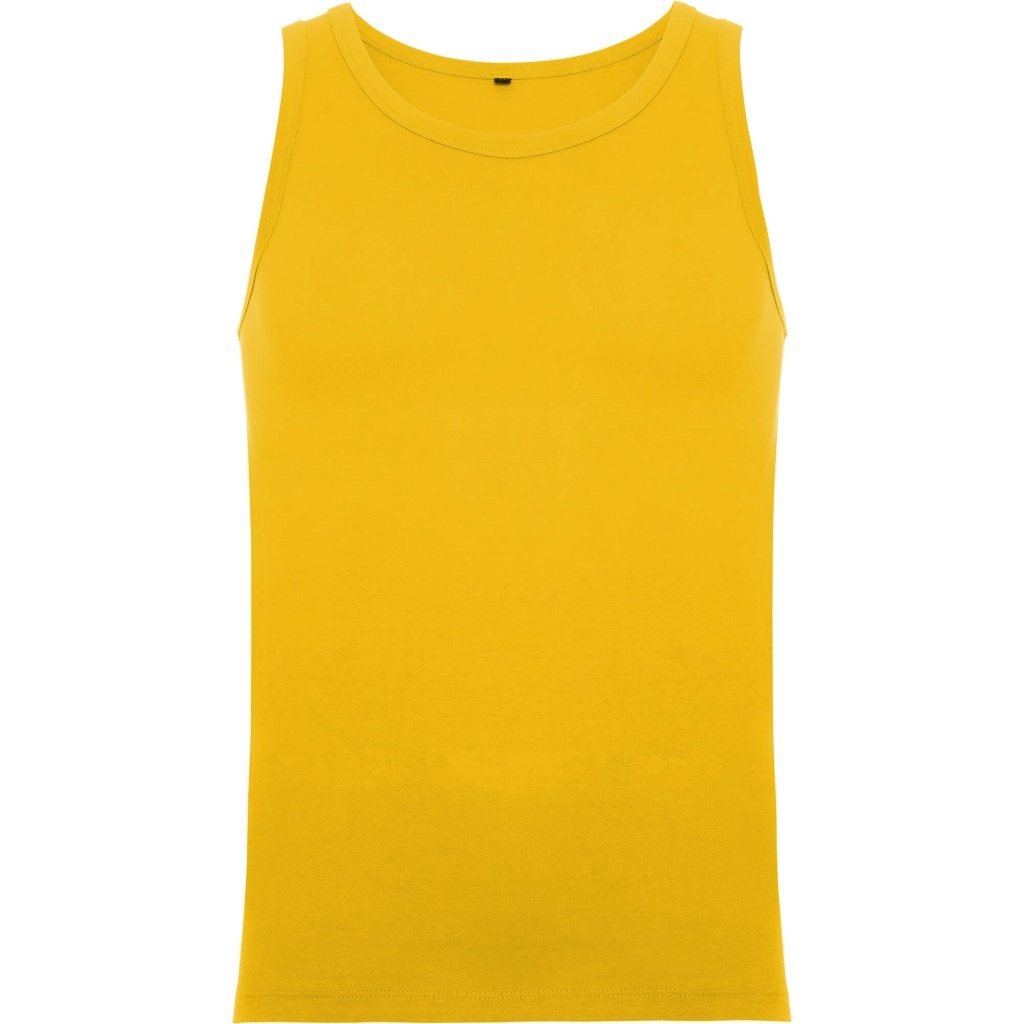 Vest with wide straps and a slim fit, featuring ribbed single jersey at the neck and armholes. Looped side seams with four-thread construction enhance durability. Texas is a semi-fitted tank top made from 100% cotton — a summer wardrobe basic.ieży.