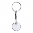 Keyring trolley coin made of metal with a colored enamel finish, designed for use with shopping trolleys.