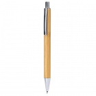Eco line ballpoint pen featuring a natural bamboo body with a silver button, clip, and tip. This comfortable, eco-conscious pen uses a 1.0 mm refill with blue ink, offering smooth, reliable writing for everyday use.