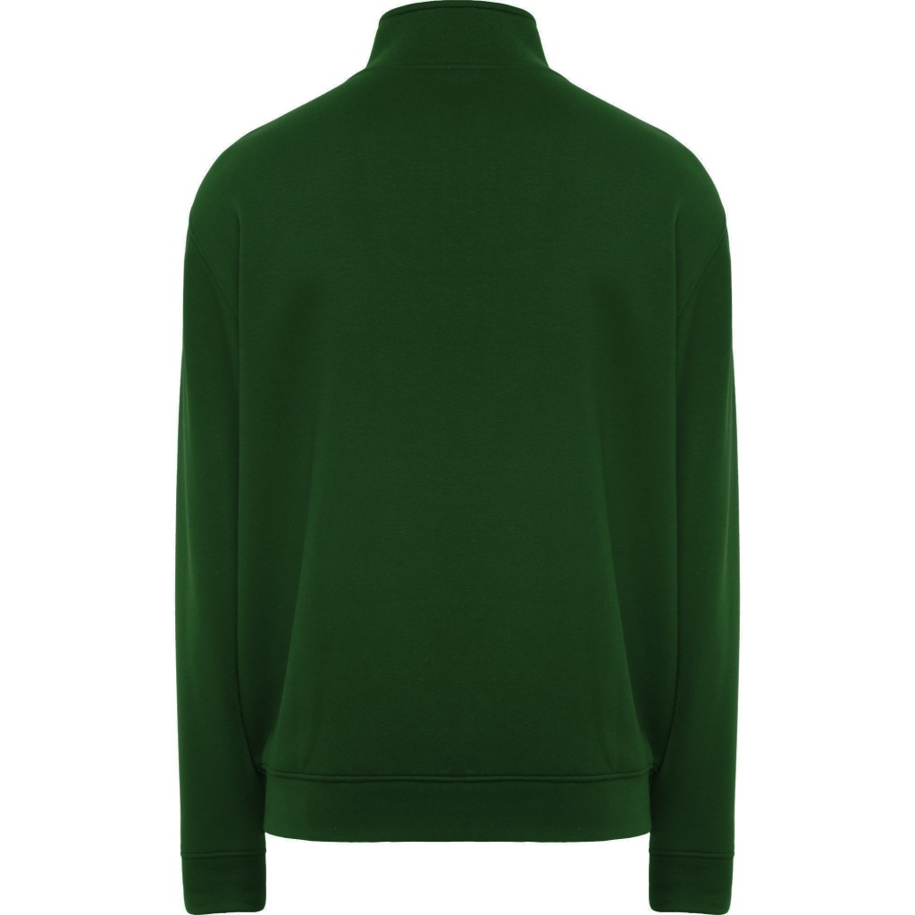 Sweatshirt with a high zip-up collar in the same color. Inner side of the collar is the same color and has a reinforced border. Ribbed 1x1 knit at wrists and waist.