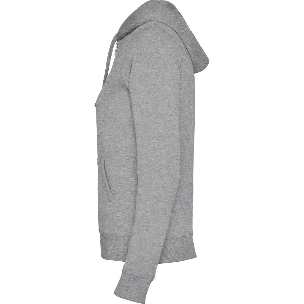Woman´s hooded jacked with hood lined to tone. Front metal zip and kangaroo pocket. Reinforced covered seams in collar. 2x2 rib knit in cuffs and waist. Fitted cut.