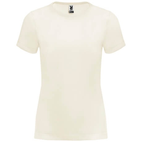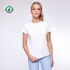 Short-sleeve women's t-shirt made from 100% organic cotton. Features a 4-layer crew neck with reinforced shoulder-to-shoulder seams, a fitted cut and side seams. The fabric is organic, produced without insecticides, pesticides or chemical fertilizers.