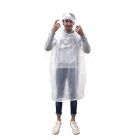 Transparent rain poncho for adults — one size, includes a hood and armholes.