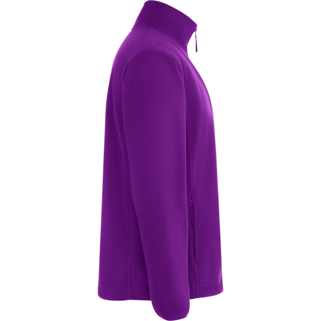 Fleece jacket with a stand-up collar and color-matched seams. Color-matched zipper. Side pockets with zippers. Elastic cuffs. Drawstring hem with internal adjusters in adult sizes.