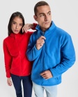 Fleece jacket with a stand-up collar and color-matched seams. Color-matched zipper. Side pockets with zippers. Elastic cuffs. Drawstring hem with internal adjusters in adult sizes.